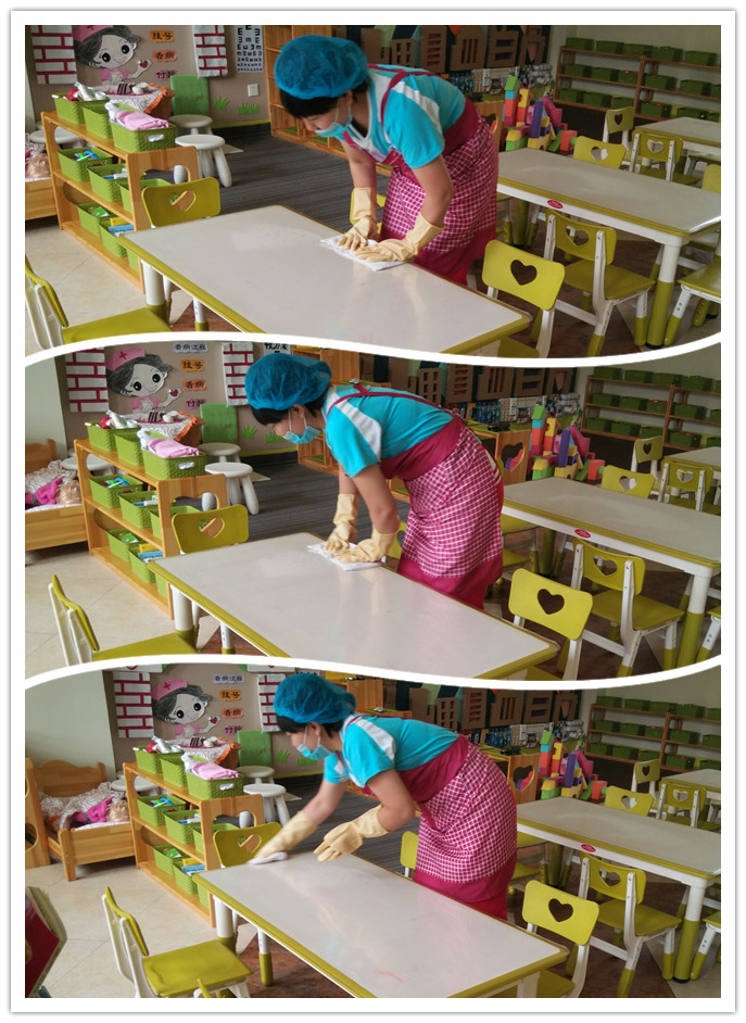我园使用“健之素消毒剂”清消清桌面。它是一种广谱、高效、速效灭菌剂,对细菌繁殖体作用5分钟,杀灭率达100%;对细菌芽胞作用10分钟,杀灭率达100%。有机物存在时对其杀菌作用基本无影响。