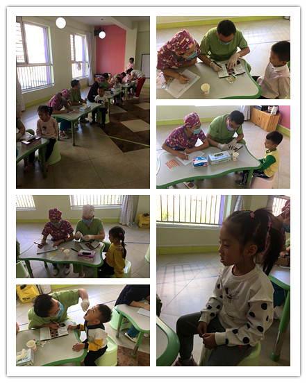 到了医生们给孩子检查口腔的时间啦!看到医生们走进教室,孩子们都是拍着小手欢迎他们,检查时也是很配合呢!孩子们一个个张大嘴巴,大胆地接受医生的检查——