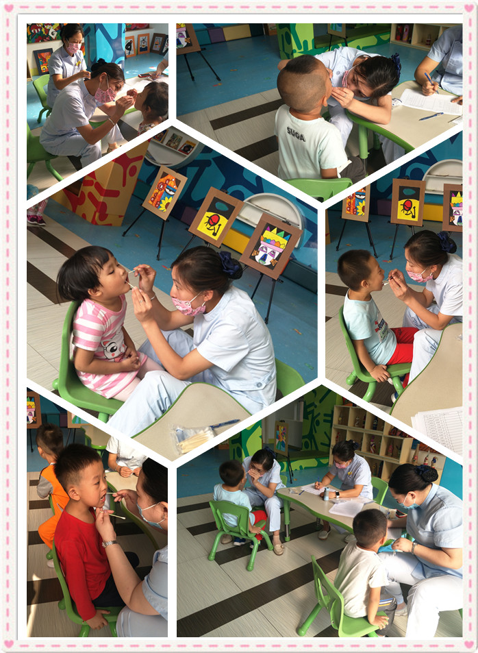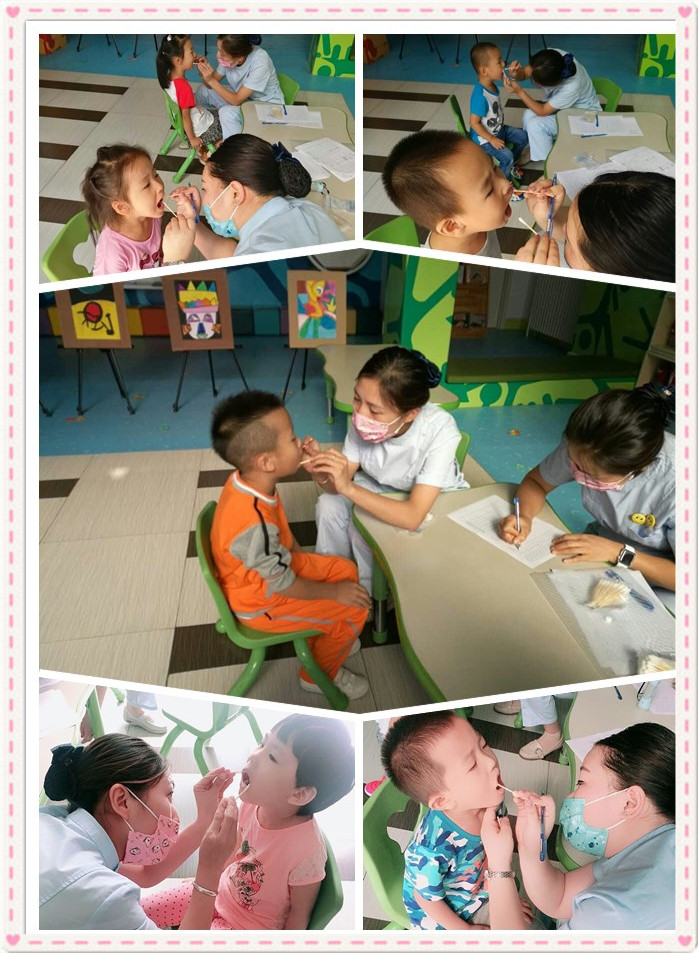 随后,医生们逐一地给孩子们进行了口腔检查,牙齿棒棒的小朋友得到了表扬,有蛀牙的小朋友也被医生提醒要及时去医院治疗。孩子们安静有序地配合着医生的检查,勇敢的表现值得嘉许!