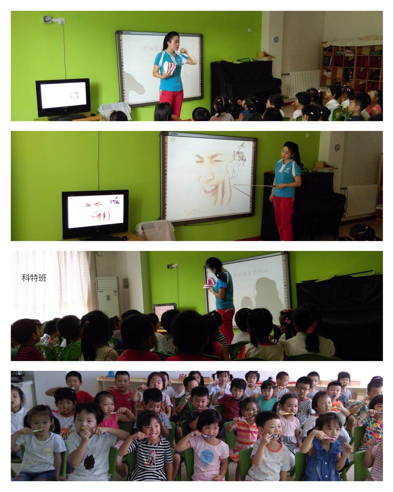 教师通过图片、口腔模具、谜语、儿歌等形式让孩子们了解牙齿的构成,掌握了正确的刷牙方法,让孩子们在寓教于乐中了解保护牙齿的重要性。