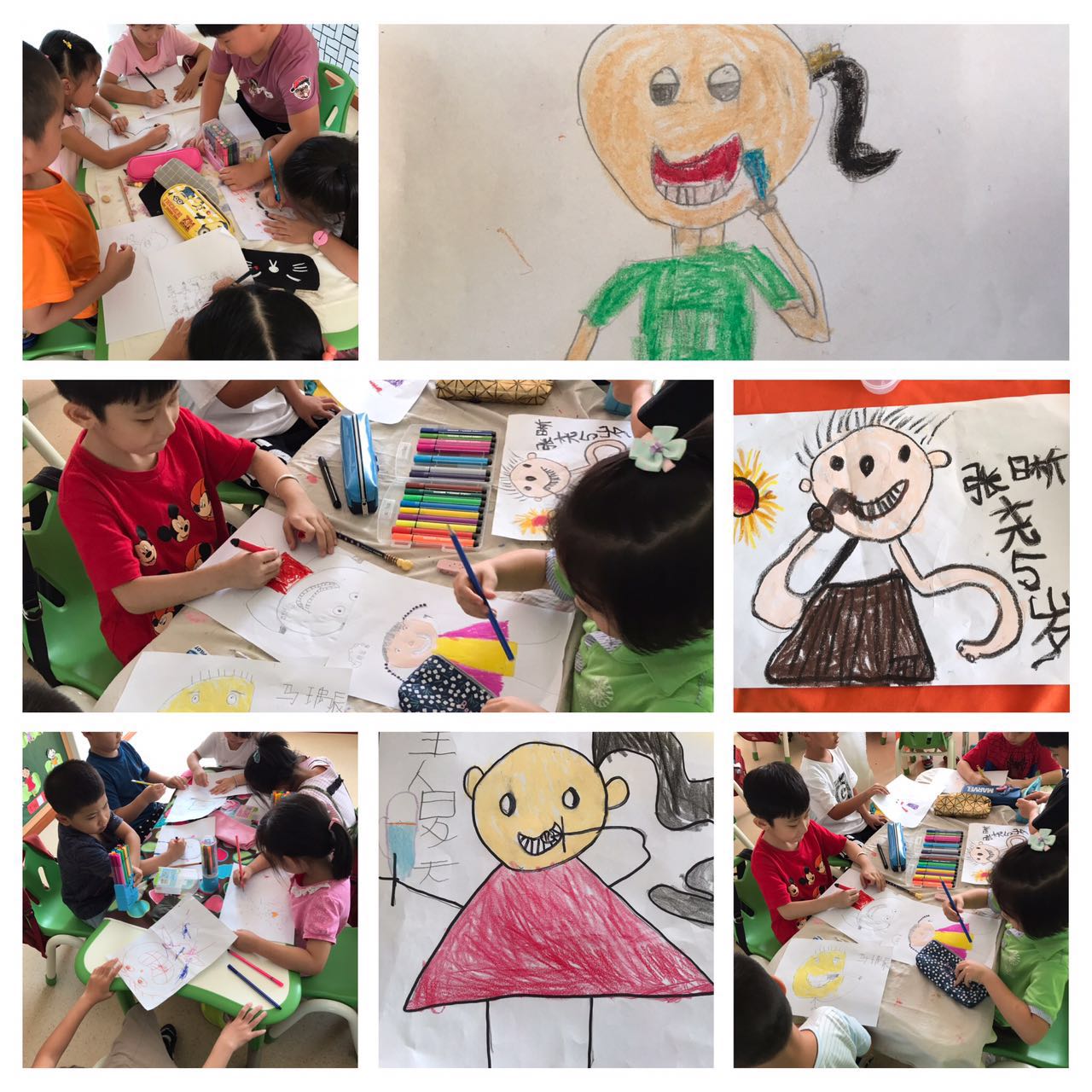 孩子们充分发挥自己的想象力,认真绘画刷牙的图画。