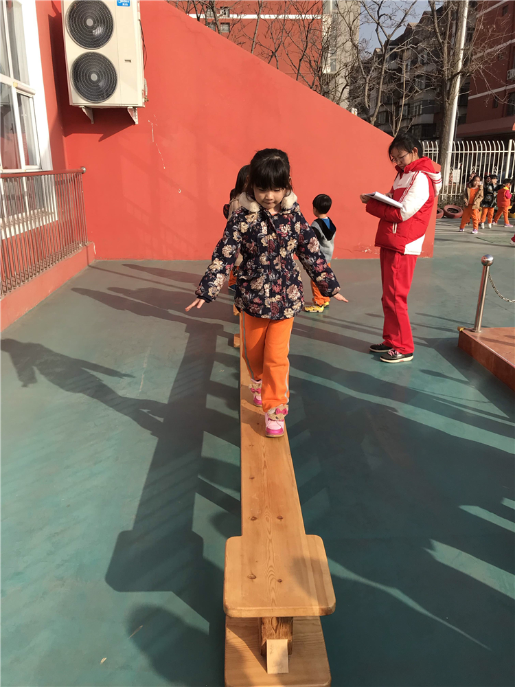 体检后,为了正确评价幼儿的各项能力发展, 更好掌握在园幼儿的体质现状,按照《3-6岁儿童学习与发展指南》健康领域制定的测试项目与标准,幼儿园开展了幼儿体能测试活动,项目包括十米折返跑、平衡木、双脚连续跳、坐位体前屈、立定跳远、投远。班级老师全面负责质量控制,保证测查结果的准确性。体能测试之后,保健医刘建芬、杜燕卫老师按照国家标准对幼儿体能进行评估,与班级老师共同探讨,有针对性地调整幼儿体育锻炼方案及户外运动项目,呵护幼儿健康、快乐成长幸福感。