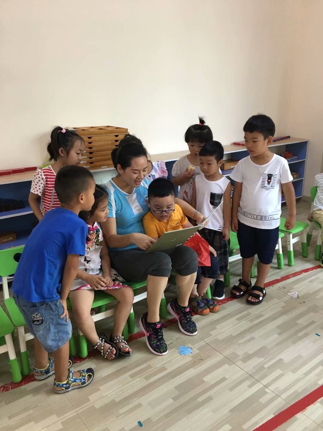 为了让超超能尽快融入到日常的教育教学及游戏活动中,湛莉也花费了大量的时间去帮助他,引导他。刚开始时,他喜欢自己在地板上躺着玩耍或进入区角玩,活动中对谁都不理,好!湛莉尊重他的兴趣点,允许他自己在一边静静地看书或玩玩具,然后慢慢地就尝试着让他坐在她的身边,不喜欢可以允许他暂时离开。渐渐地超超坚持待在她身边的时间越来越长,最后就让他和他的姐姐坐在一起听课,直到现在他已完全融入到小朋友们中间。