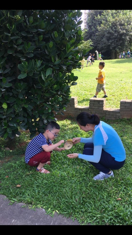 不管是集体教学活动、游戏还是户外活动时,湛莉总会有意识地让超超参与进来,让他把自己听过的故事、看过的动画片,试着用自己的语言讲给其他小朋友们听。尽管目前他有时会前言不搭后语,但他变得勇敢了!