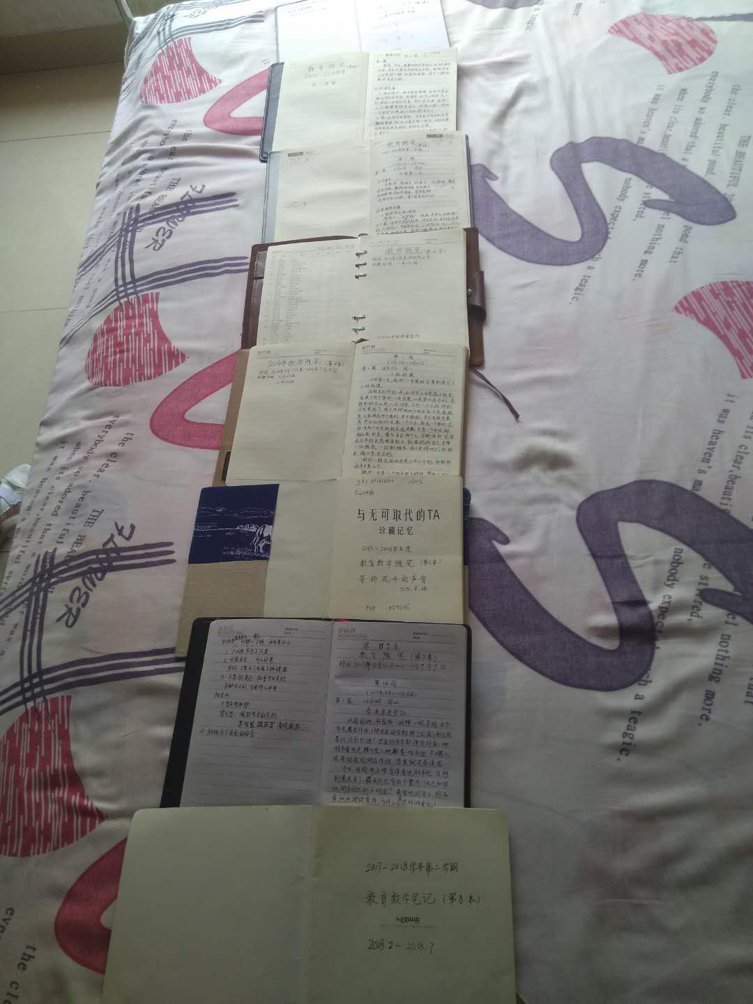 从2008年有了写教育随笔这个想法起,十年间,郭海云从未间断。每天下班后回到家,她打开笔记本,一个人静静地回忆着白天在学校与孩子生活的点滴,有趣的校园故事、有效的教育方法、一节精彩的好课和课后的感受、去家访之后的感想、教研会上杨校长的讲话和其他老师分享的好的教育心得……都是她记录的内容,她都会一一记录下来。有时下班到家已经很晚,郭海云会一直写到深夜;有时当天实在来不及写,她也会在第二天凌晨四五点起床完成记录;有时甚至要利用吃饭、上厕所等一切可以利用的时间记录……每天记录教育随笔,对郭海云来说已经成为像吃放、睡觉一样每天必须要做的事。