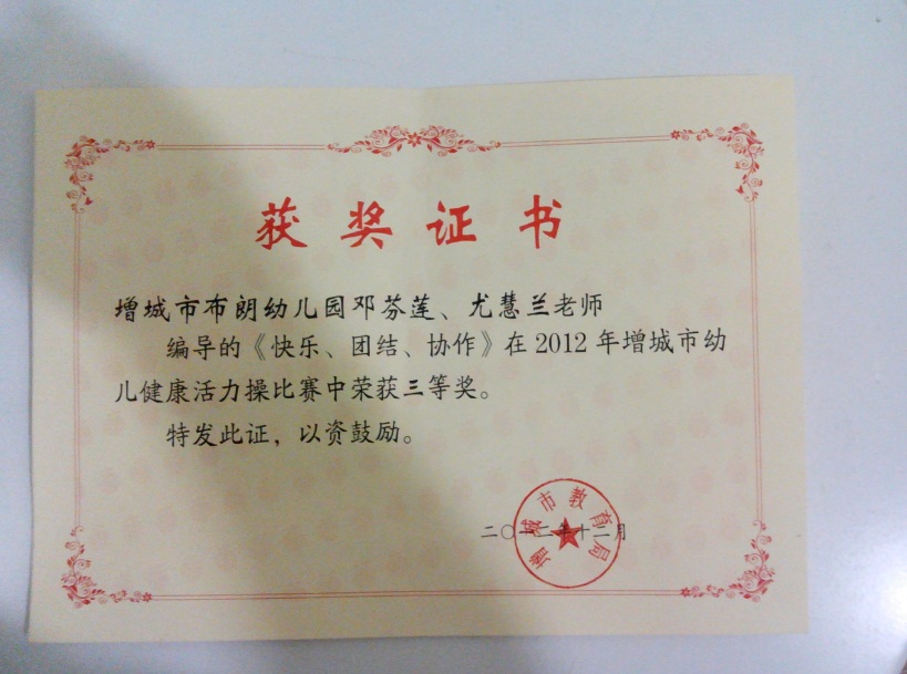 恭贺:邓芬莲、尤慧兰老师在2012年增城市幼儿健康活力操比赛中荣获三等奖!