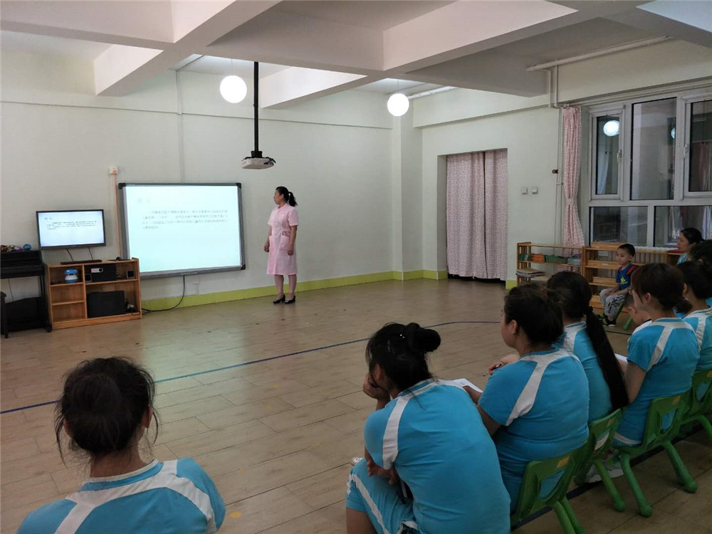 保健医牛大夫对于幼儿园最常见的气管异物、烫伤、流鼻血等突发性意外的急救措施进行了一一讲解,让教师们在最短的时间内掌握了基本的急救技巧。在培训过程中,老师们认真听讲,通过保健医细心讲解、直观示范,很快学会了简单的急救方法。
