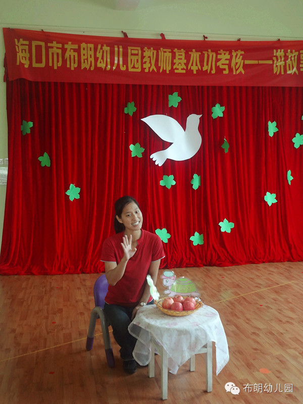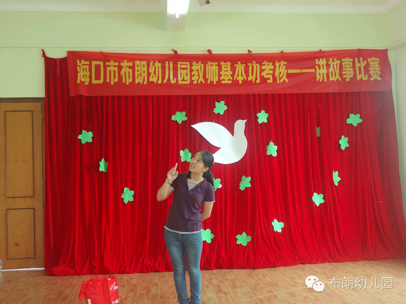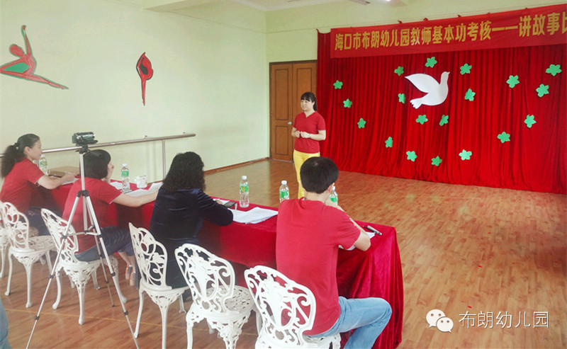 为了贯彻落实《纲要》《指南》精神,提升海口市布朗幼儿园教师队伍的业务能力和加强教师队伍管理,提高教师素质,提升布朗幼儿园教育教学整体水平;为教师提供锻炼、展示、提升的平台,海口市布朗幼儿园于2014年10月27日-30日进行教师基本功技能考核--讲故事比赛。本次竞赛有58名教师参加,通过自选和现场抽签创编两部分内容考核教师的语言表达能力、即兴发挥能力、故事创编能力等综合素质。现场气氛紧张而热烈,老师们神采奕奕、惟妙惟肖的演绎,让故事比赛变得生动有趣、富有感染力。一次考核,一场比赛变成了一场别开生面的故事会。