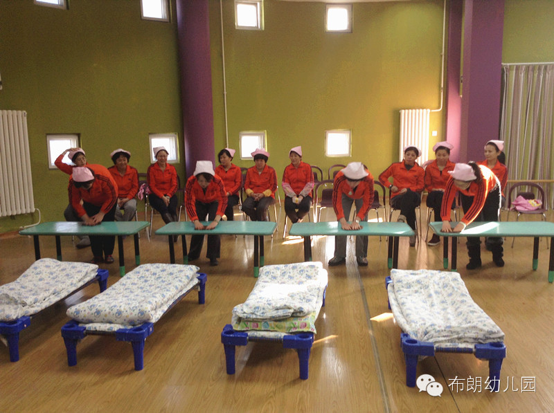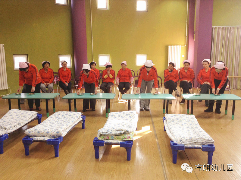 老师们的技能考核,包括叠被子(比速度)、擦桌子(不放过每一个死角)、餐前准备、分餐(每个的基本量和个别关注),最后还有理论学习。我们的保育员老师一个个都是精量师,长期的工作积累和科学保育的培训学习让大家充分自信的为孩子的健康保驾护。