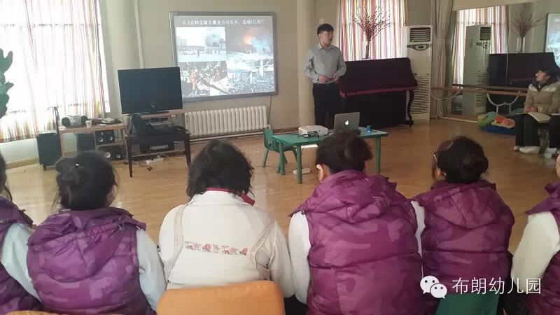 在北方冬季是火灾高发期,大兴区育龙布朗幼儿园2015年1月20日利用中午时间,邀请北京市防火办公室李老师来园为老师们培训安全用火、用电知识以及如何防范扑灭初期火情、一旦火灾发生如何逃生的办法。使教师们更加深刻地认识到安全的重要性,认识到了安全是园所的生命,安全是园所的立足之本,即增强了教师的安全意识,同时积累了宝贵的经验。