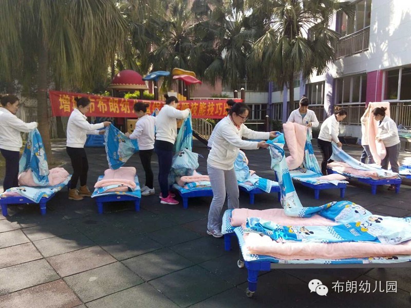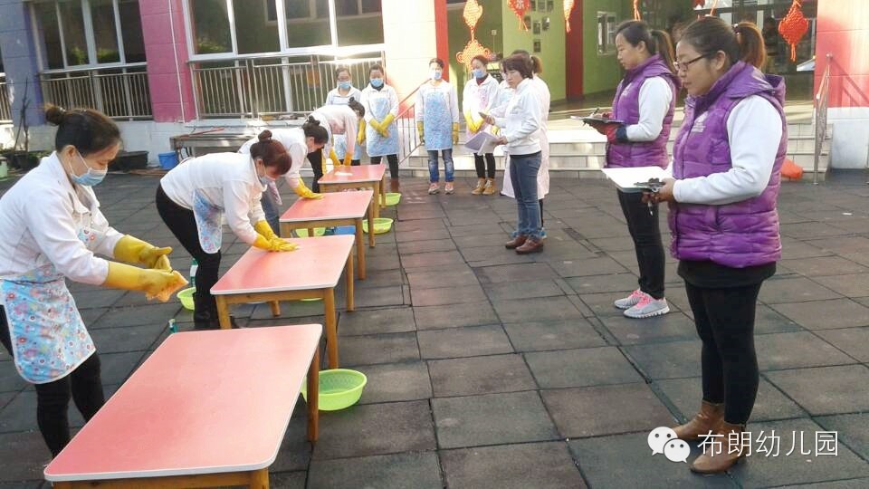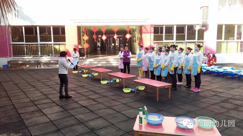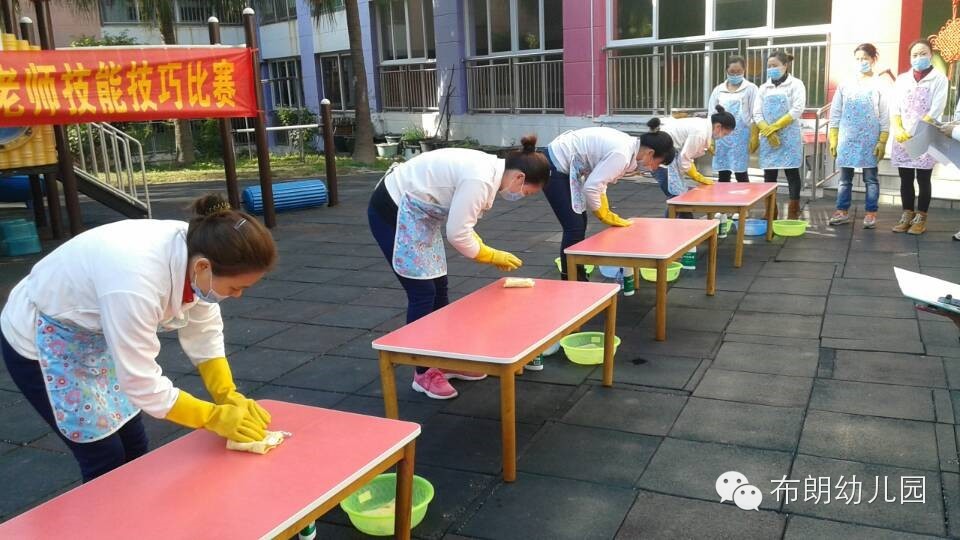 为了深化幼儿园后勤工作内涵,促进幼儿园保育人员的综合水平,提高日常工作实践技能,规范保育员工作细则。在1月23日上午9:00布朗幼儿园举行了一场别开生面的保育员技能大赛,本次比赛的内容分为理论考试和实践技能操作。首先是理论考试在幼儿园会议室拉开了序幕,经过前期的培训学习和精心准备,赛前她们齐呼“展我技能,亮我风采”的口号,每个保育员都信心十足地迎接挑战,传递给每个人的都是正能量。“开始!”评委一声令下,叠被子比赛开始,保育员老师先迅速的将被子套进被套,然后进行折叠,老师们麻利的将被子整齐叠好。擦桌子比赛进行得也是如火如荼,配置消毒液,消毒幼儿桌子,只见她们快速的将抹布分别放进清水桶和配置好的消毒水桶内,搓洗、搅干、擦桌子。13位保育员都很认真、娴熟地完成了规定的比赛内容。第三项是扎辫子比赛,由选手抽签决定扎辫对象,比赛中保育员们个个有备而来,各式工具应有尽有,她们麻利地或梳或扎或盘或编,松散的头发经老师们灵巧的手一打理,变成了美丽公主辫、韩式蜈蚣辫、时尚松松辫、可爱香蕉辫温暖爱心辫……比赛期间还传来保育员和小朋友针对辫子样式轻声细语的交流声,自然、放松的氛围使小朋友们心情愉快地配合完成了比赛,孩子们对自己的新发型也是十分满意。