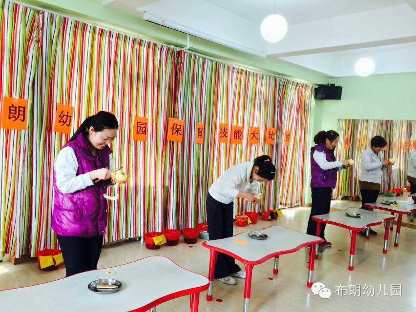 保育工作是幼儿园重要的工作之一。为切实加强幼儿园保育工作,有效提高保教人员的整体业务水平,给保育员提供了一个表现自我、展示自我的机会,2015年4月10日中午,布朗幼儿园举行了保育员技能技巧比赛活动。