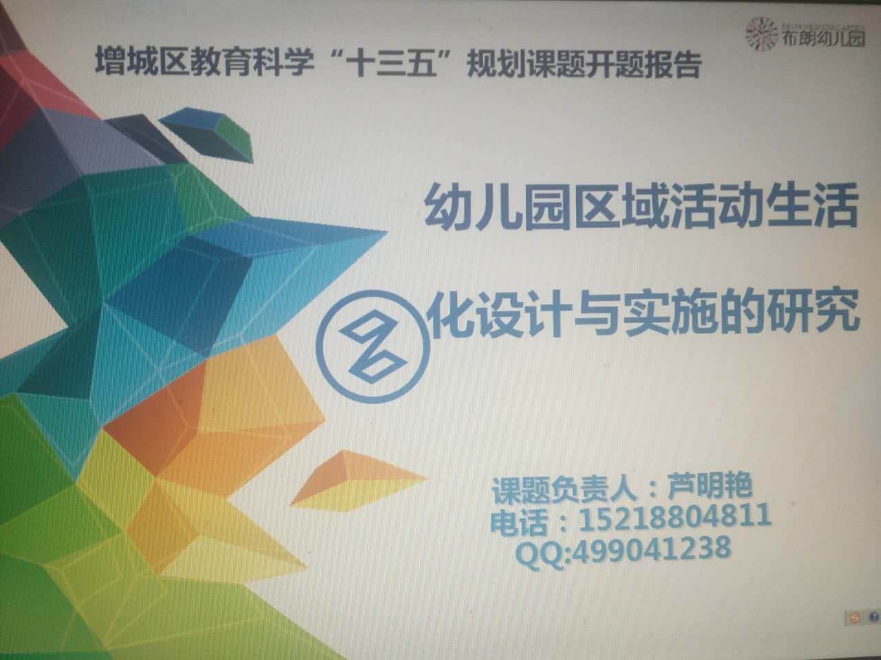 此次我园立项的课题是《幼儿园区域活动生活化设计与实施的研究》,课题组由组长芦明艳园长及6名骨干教师组成。