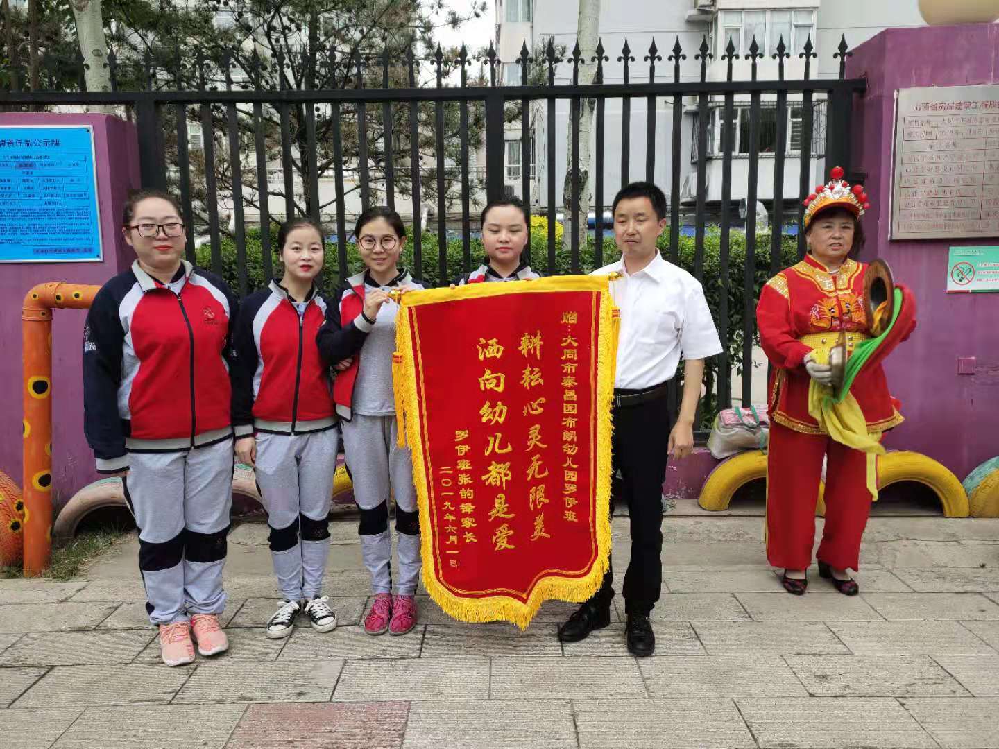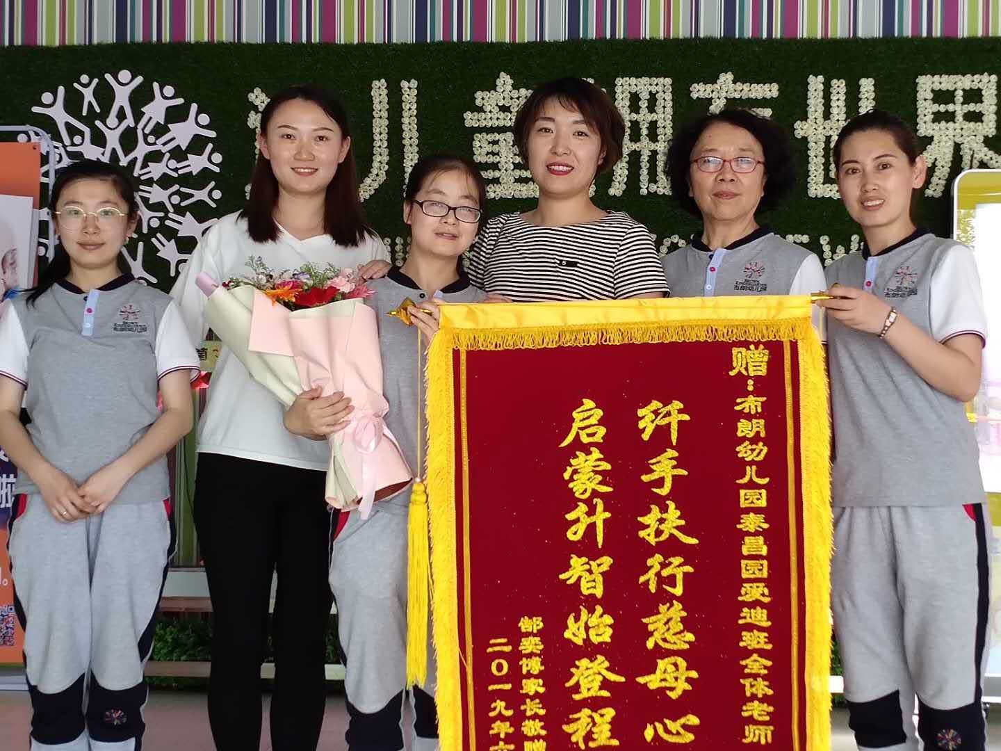 6月,布朗幼儿园大同泰昌园罗伊班张韵铎家长请来了锣鼓队,锣鼓喧天送锦旗, 在场的家长和老师都为之感动;爱迪班郜奕博家长为了感谢老师的悉心教导、耐心照顾也送来了锦旗“纤手扶行慈母心,启蒙升智始登程。”
