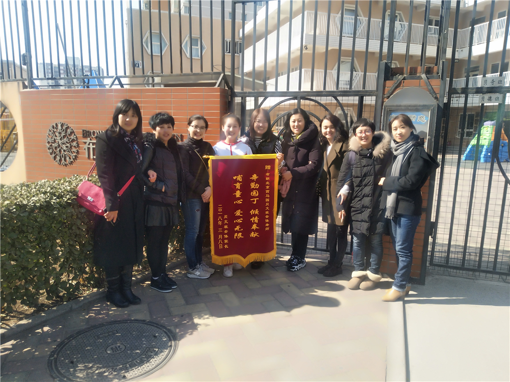 3月8日是一年一度的国际妇女节,在这个特别的节日里,布朗幼儿园北京西马园贝文班和贝奇班,分别收到了家长代表送来的沉甸甸的礼物——锦旗。