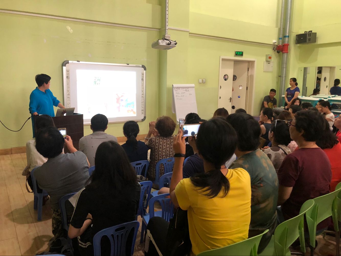 接着,新班老师和家长也进行了见面会,向家长介绍了班级基本情况,让家长们了解本学期幼儿发展及教学目标、家园配合等事项。同时各班老师还围绕家长关心的一些问题展开讨论,让家长知道如何帮助孩子消除“新生入园焦虑”,尽快适应幼儿园的新生活。