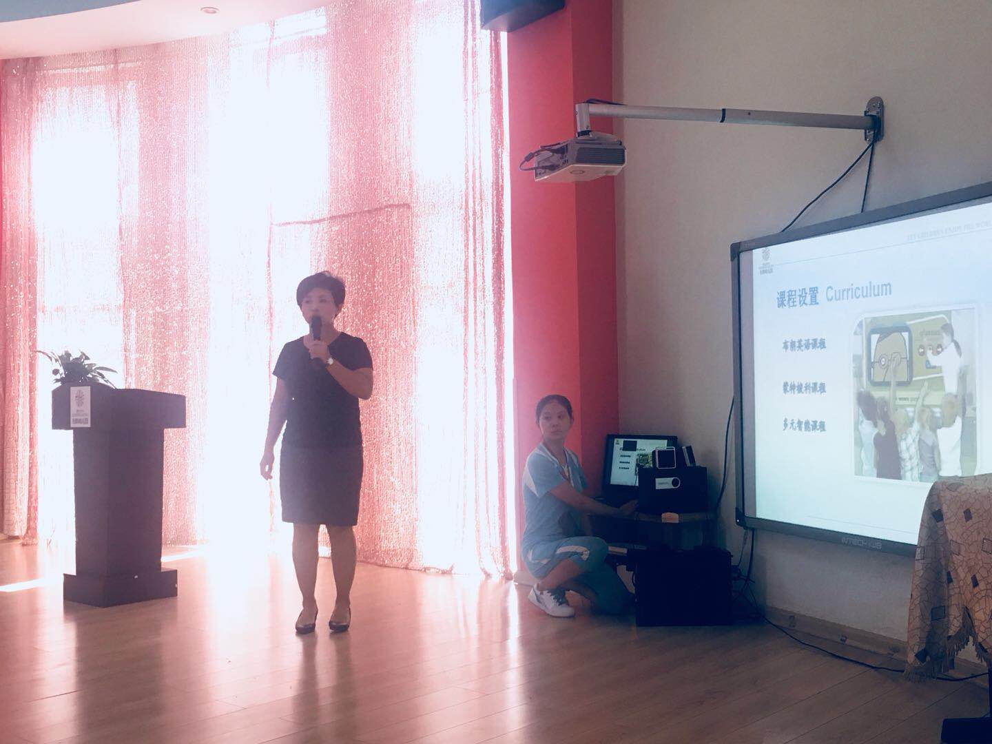 第四个环节,教学主任倪老师利用多媒体工具详细介绍了幼儿园的教学体系、大型活动,让家长了解到我园的课程的三大体系:布朗英语、蒙氏课程、主题课程以及每一种课程的特色和对幼儿产生的教育意义和价值所在。