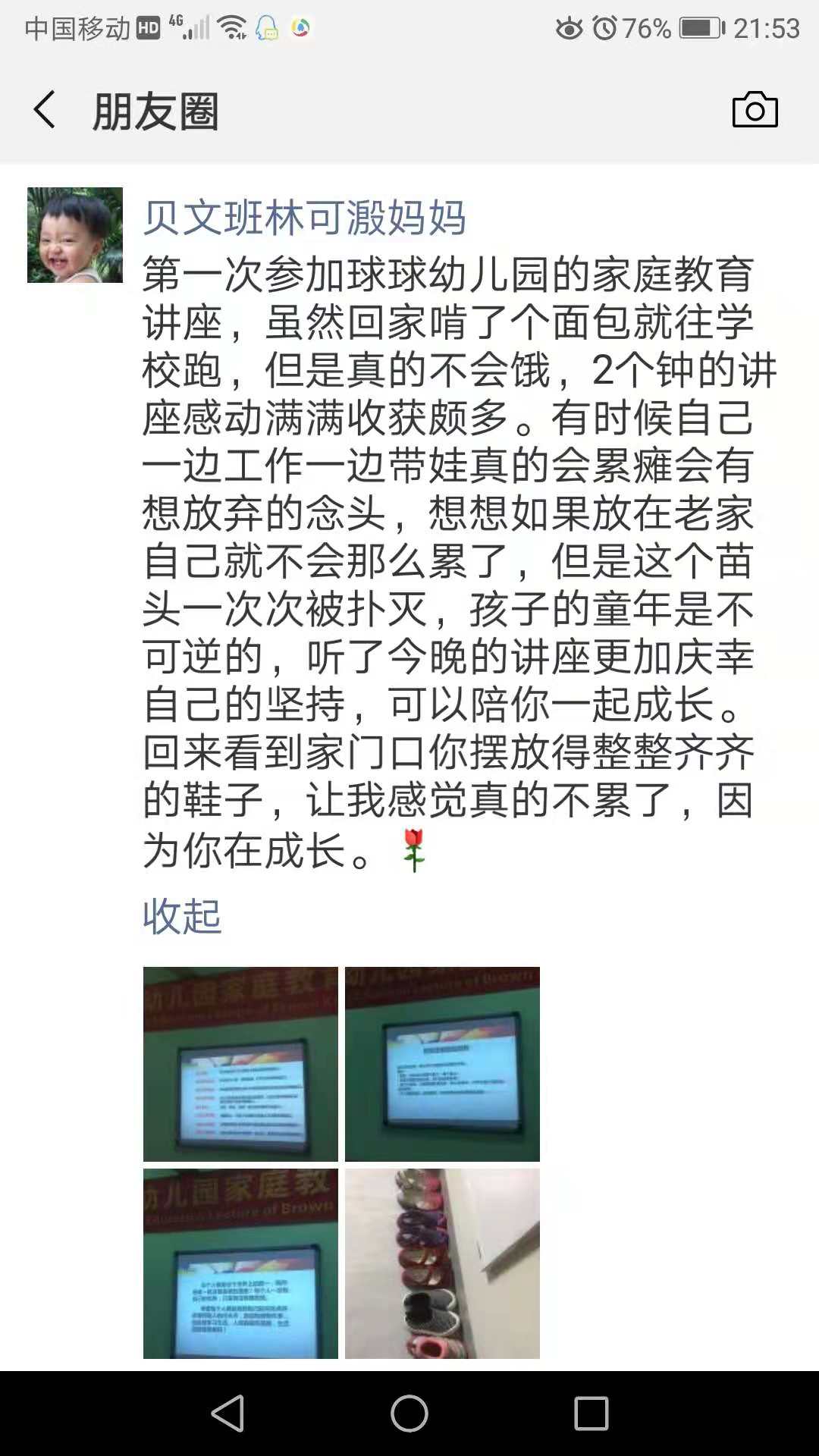 活动结束后,家长们都表示获益良多。家长的认可与肯定是我们前进的动力,在未来的日子里,布朗广州新康园将会一如既往坚持家园共育之路,牵紧我们的手,共同搭建好一座“家园共育”的桥梁,连接起彼此“让儿童拥有世界”的梦想,让布朗的小朋友、大朋友们在欢快中收获精彩人生!
