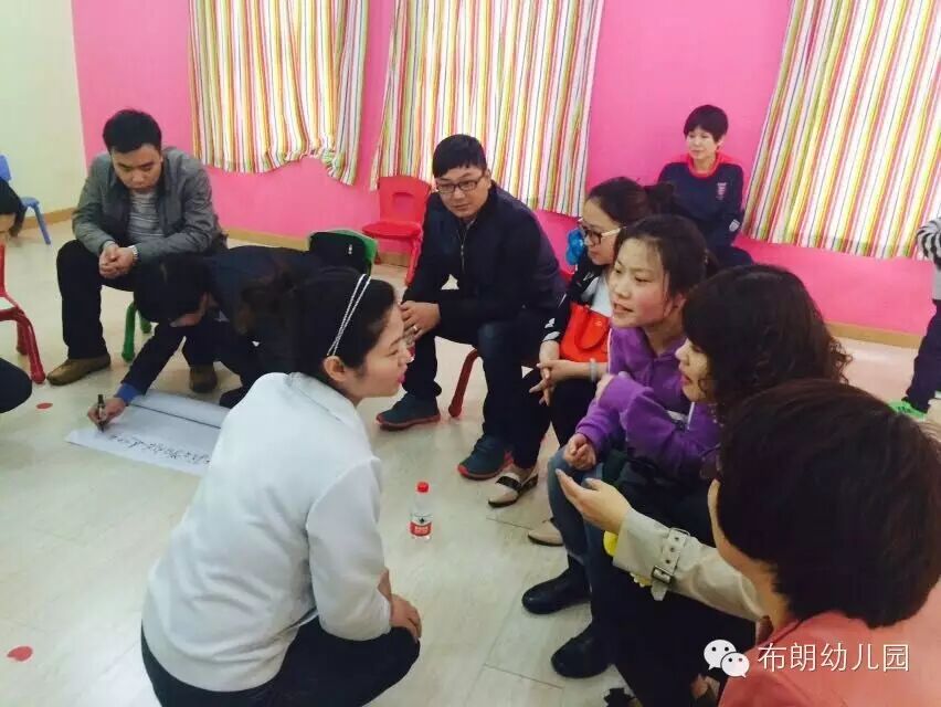 第二环节是各班级的新生家长分成三个组进行讨论,讨论的问题是“在学前教育中,孩子最重要是学习什么?”最后每组请一个家长做代表,总结小组的讨论结果。老师们认真听取了家长对我们工作提出的建议和要求,并做好记录,最后教师与个别家长进行交流,以便进一步提高保教工作质量。