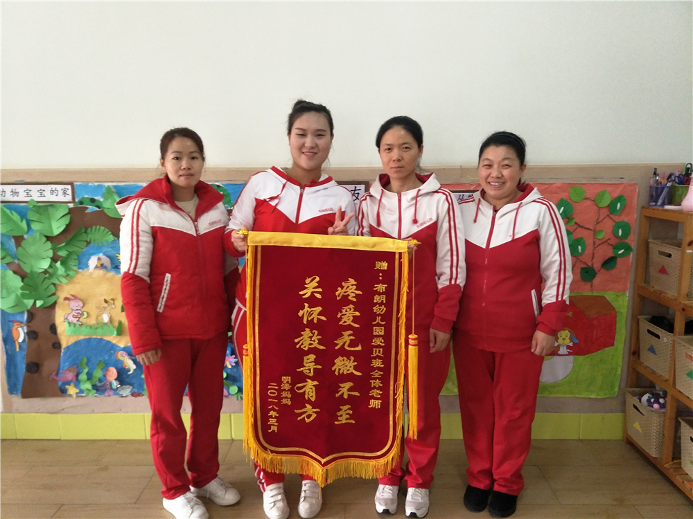 家长会后,爱贝班的老师还收到了家长送来的写有“关怀教导有方,疼爱无微不至”的锦旗,感谢老师对孩子教育工作的辛勤和尽职尽责,感谢布朗幼儿园出色的师资队伍。家长对老师们工作的肯定,无疑是对本园工作最大的支持与鼓励。收到这样感谢的锦旗让我们的全体老师倍加温馨和幸福,我们会继续秉持认真负责的工作态度,更加用心呵护我们的孩子们。