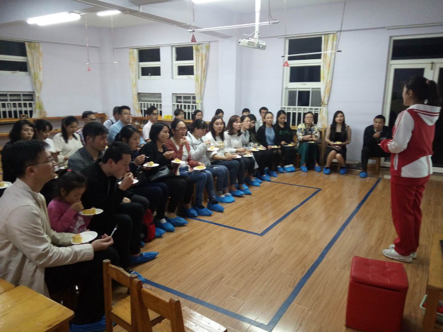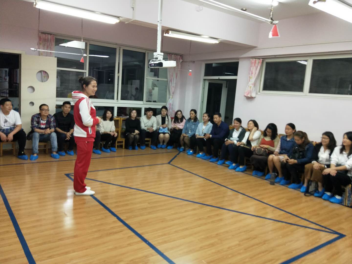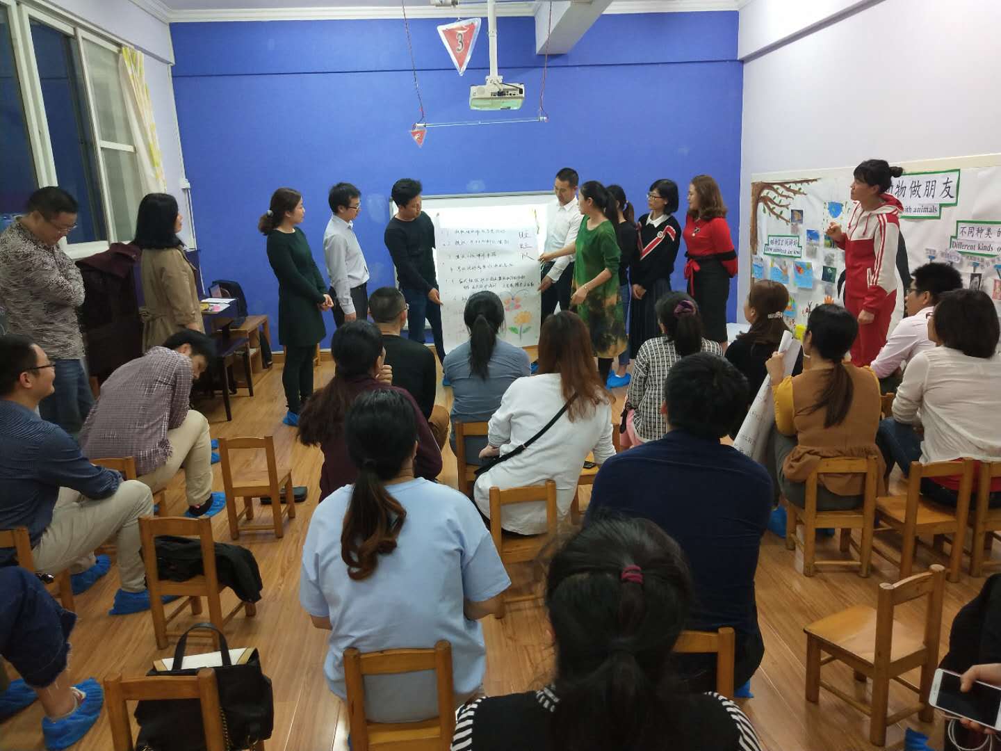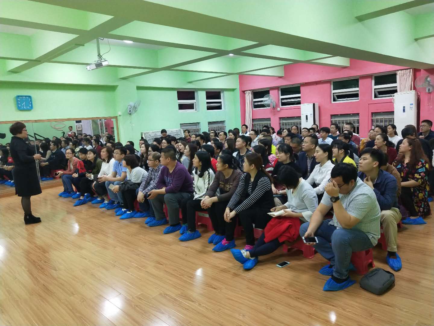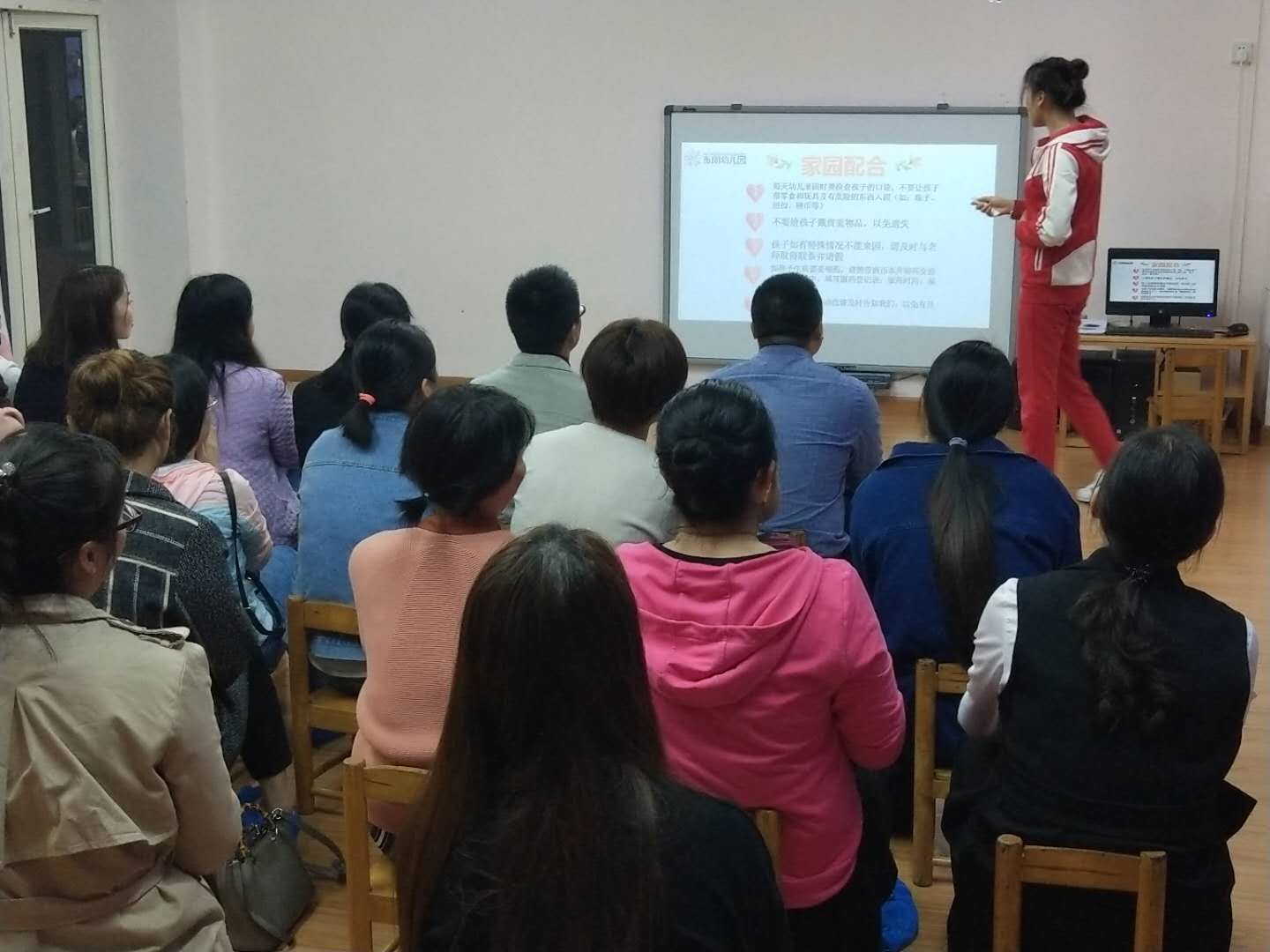 随后,各班班主任就幼儿园的课程、班级的环境、区域、本学期的大型活动、家园配合等方面进行了详细的介绍。