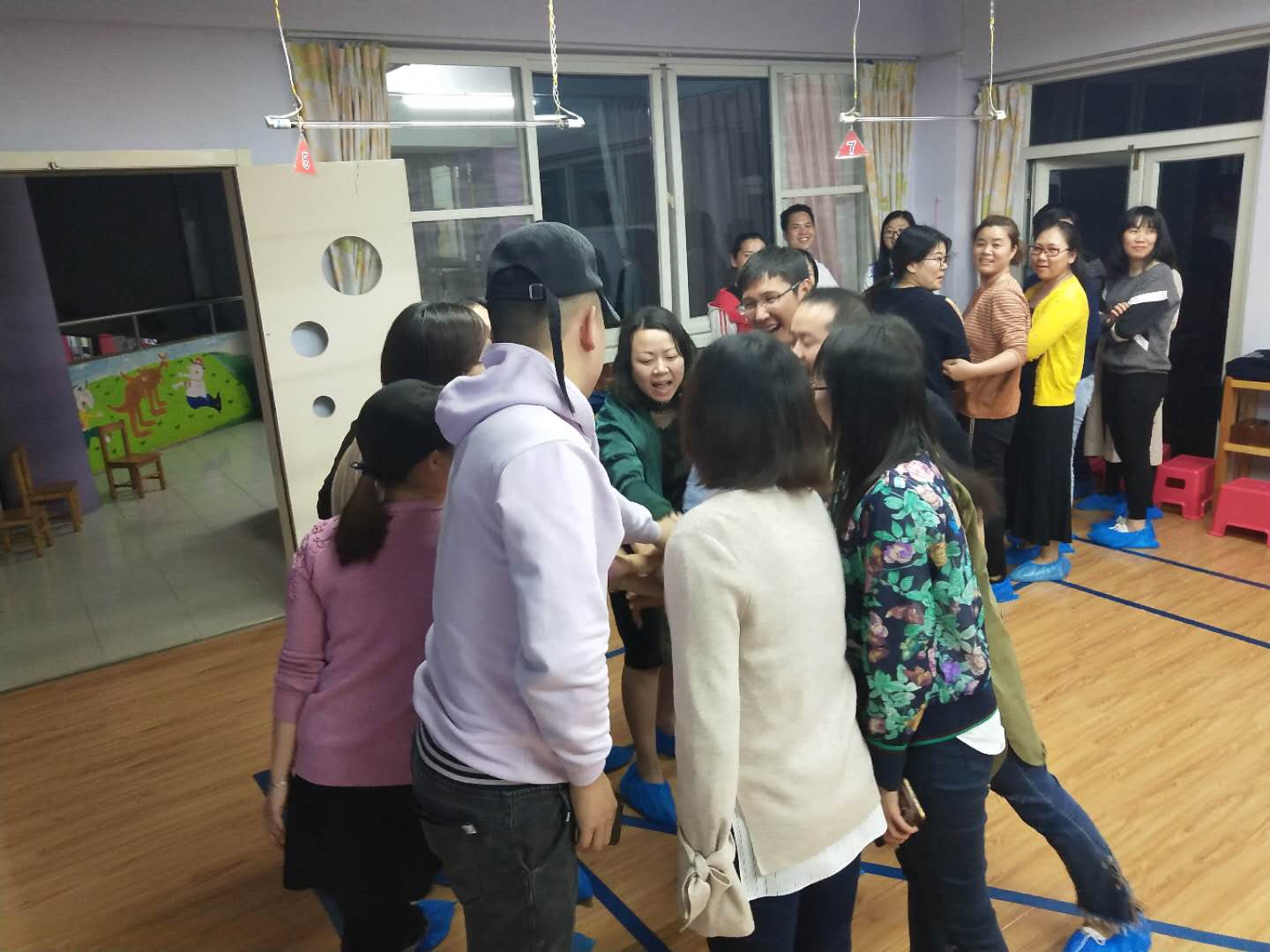 活动一开始,一曲欢快有趣的《找朋友》就把各位家长带回了童年时代,大家在游戏中熟识彼此,“革命感情”迅速升温。