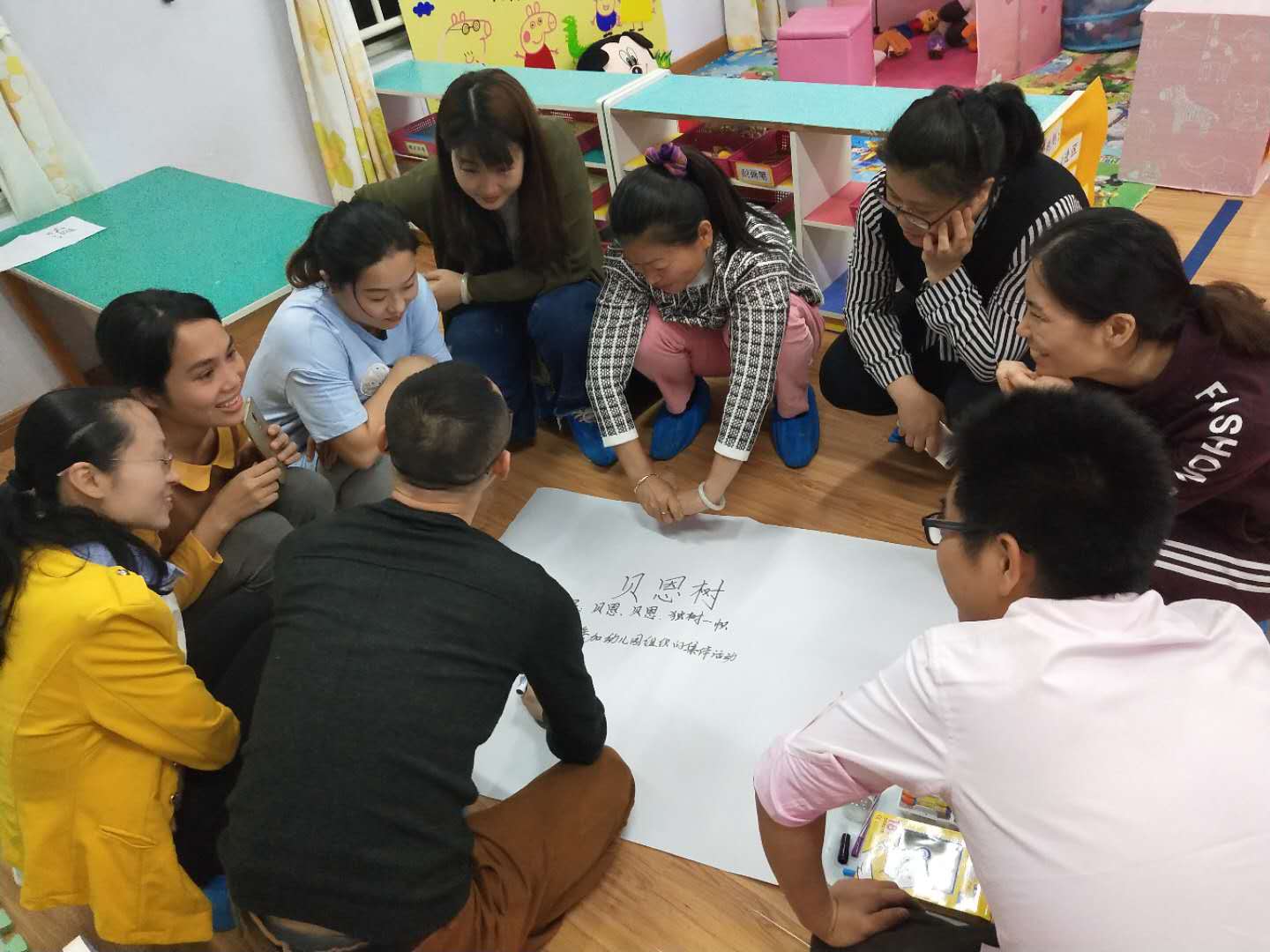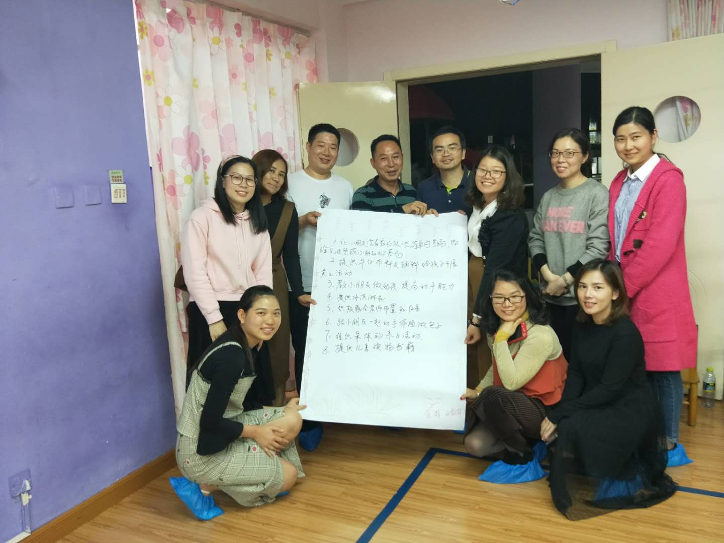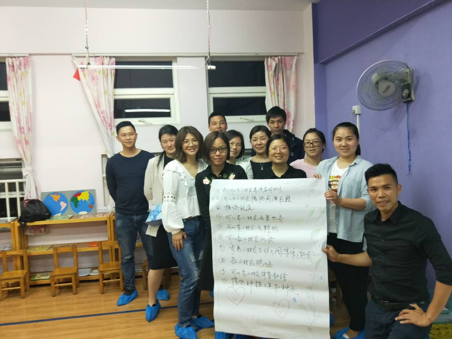 家长们也在《设计游戏》中就“我们能为班级做些什么贡献”这个话题,集思广益、面面俱到地讨论出具体可行的方法,并且记录下来制作成漂亮的海报。