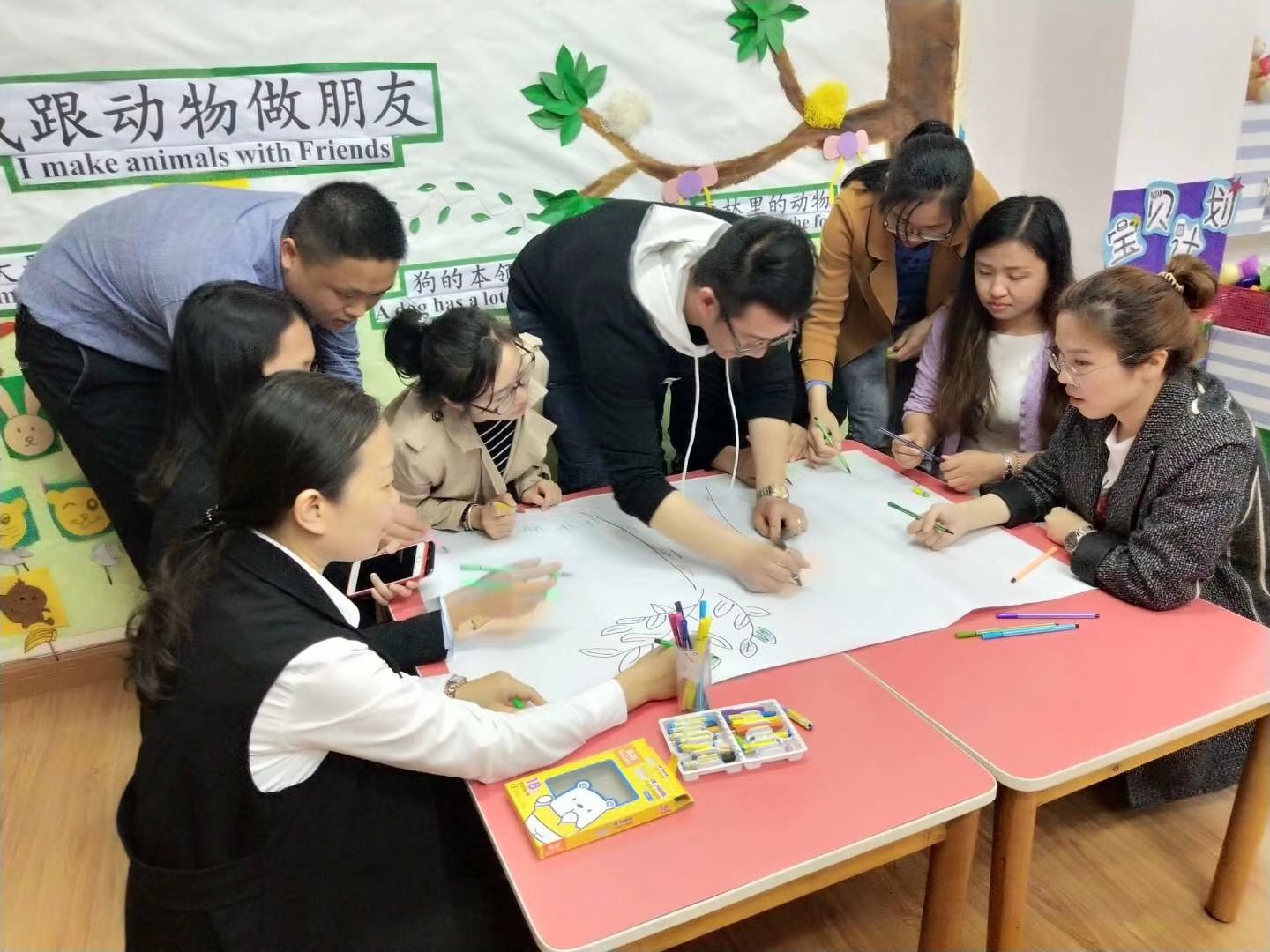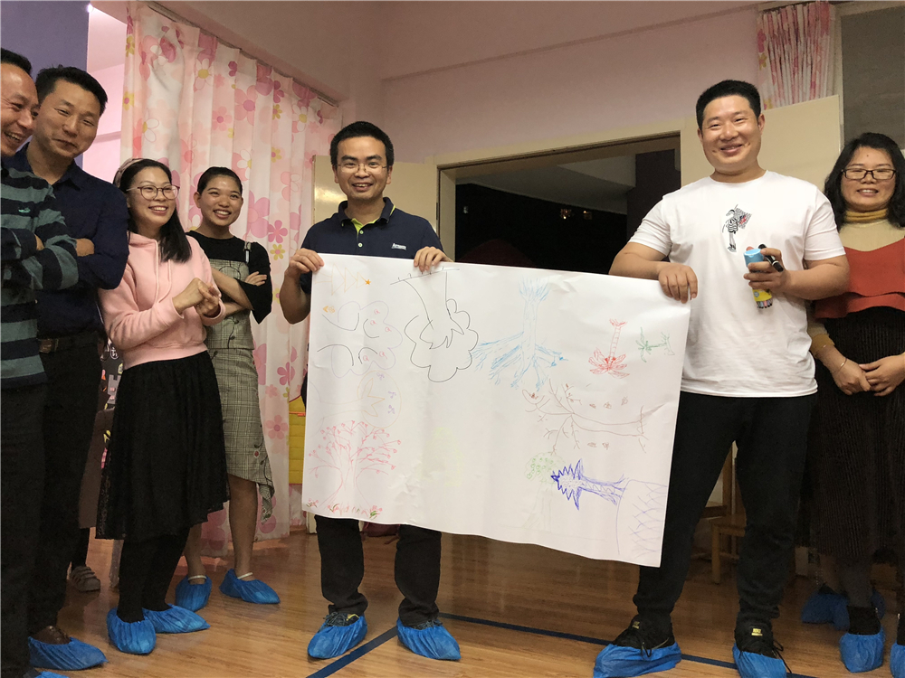随后家长们又一起观看《菠萝的故事》,更加明确了家庭教育的重要性;在团队游戏《画树》中各团队鼎力协作,画出了属于自己队伍独一无二的树,也感触到每个孩子都是独立的个体,教无定法需因材施教。