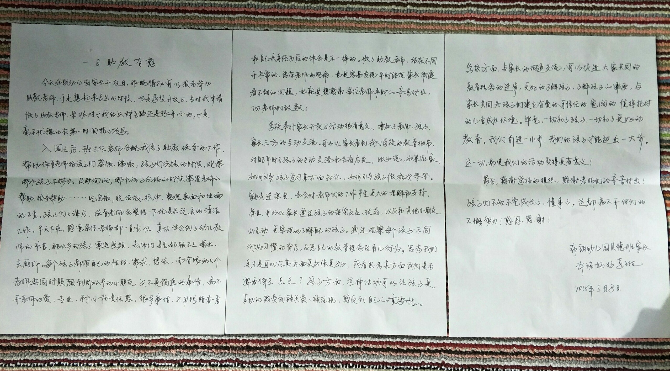 本次家长半日开放活动,家长助教团也是一道亮丽的风景线,他们认真负责、一丝不苟得完成助教工作,同时对本次的体验活动也感悟颇深,主动与班长分享感受,并对老师的工作给出高度的赞扬和肯定。感谢有您,我们的活动才能精彩纷呈;感谢有您,我们的孩子如此幸福快乐;感谢有您,布朗幼儿园更有前进的信心和动力!