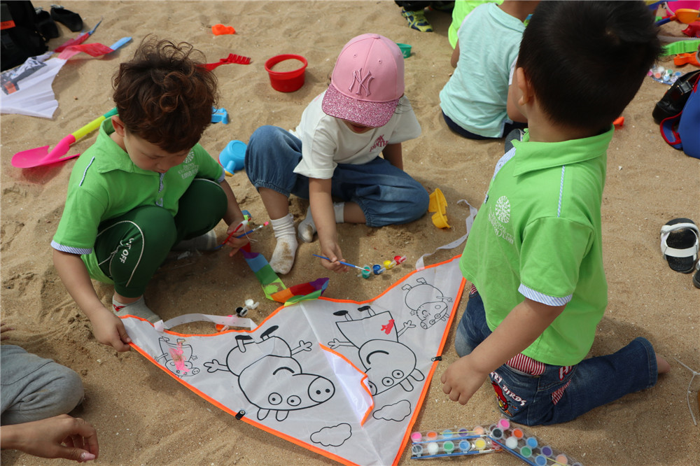 通过东疆港之行,让孩子们切身感受沙滩的多样性,亲子同绘风筝,体验了制作的乐趣,增进了亲子间感情,同时满足他们的探索、创造的欲望,让宝贝们也在体验中萌发热爱家乡、保护家乡的情感。