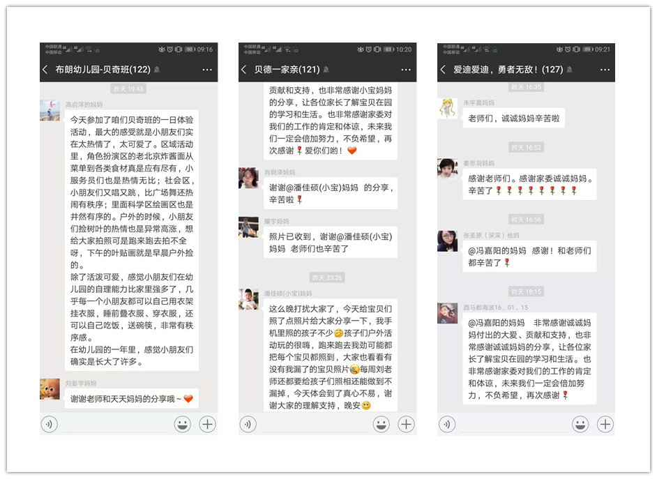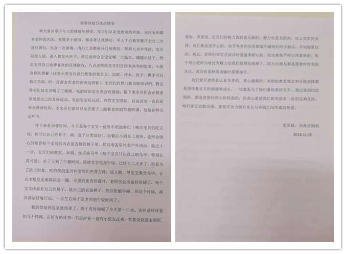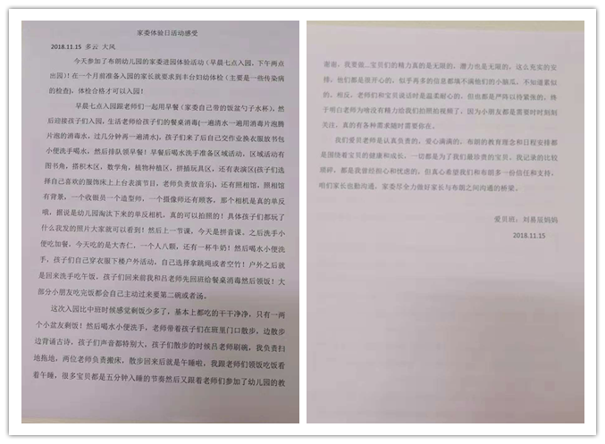 活动后,家委老师参加了幼儿园的教研会,和老师们一起探讨、学习和研究,走近老师的生活、工作和学习。家委们在分享环节不断地说:“老师们真是不容易,保育老师也非常辛苦。通过教研我们也深刻明白,幼儿园对孩子课程活动的安排,都是有一定教育意义的,而不是单纯地玩。”通过半日体验,家委们纷纷表示,今后会更加支持幼儿园工作,做好桥梁纽带作用。当然,布朗幼儿园的老师们也一定会倍加努力,为实现“让儿童拥有世界”的目标不断迈进!