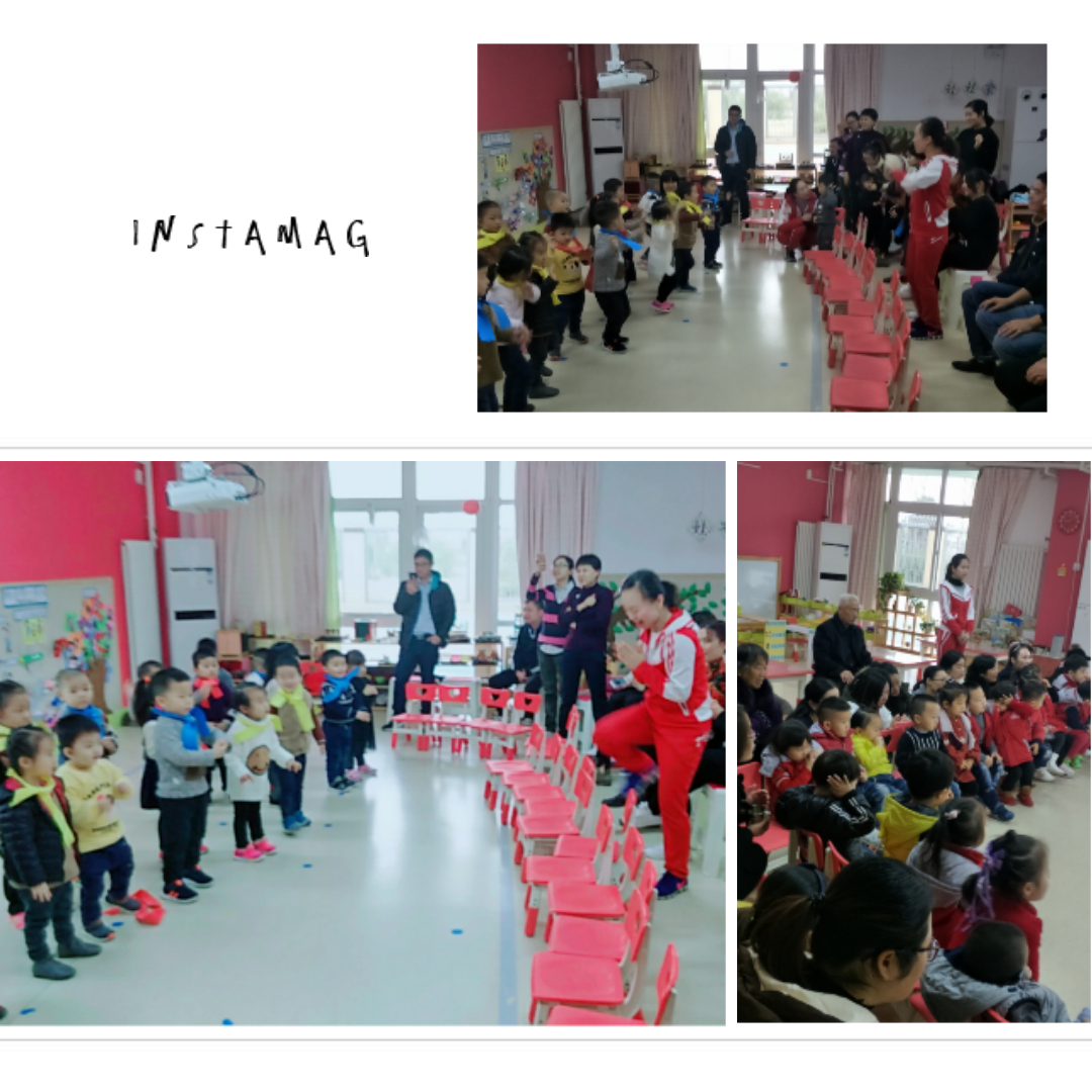 有了爸爸妈妈在一边的热切关注,孩子们比平时更为活跃,热情高涨,都要把自己最完美的表现献给爸爸妈妈们;爸爸妈妈们听到孩子们富有想象的回答,在窃窃私语中不断地透露着赞美之词。在游戏环节,家长受到孩子们的感染,跟着音乐节奏进入了游戏,有助威的、有加油的,玩得不亦乐,似乎也跟着孩子们回到了童年。