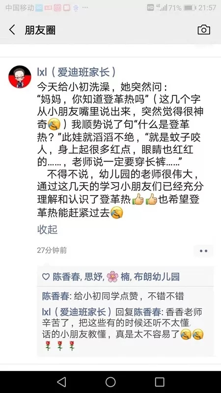 为了加强宝贝们的自我保护意识,老师们开展了预防登革热的科普知识课程。宝贝们学有所获,还当起“大家长”向爸爸妈妈提出了有效的预防建议。
