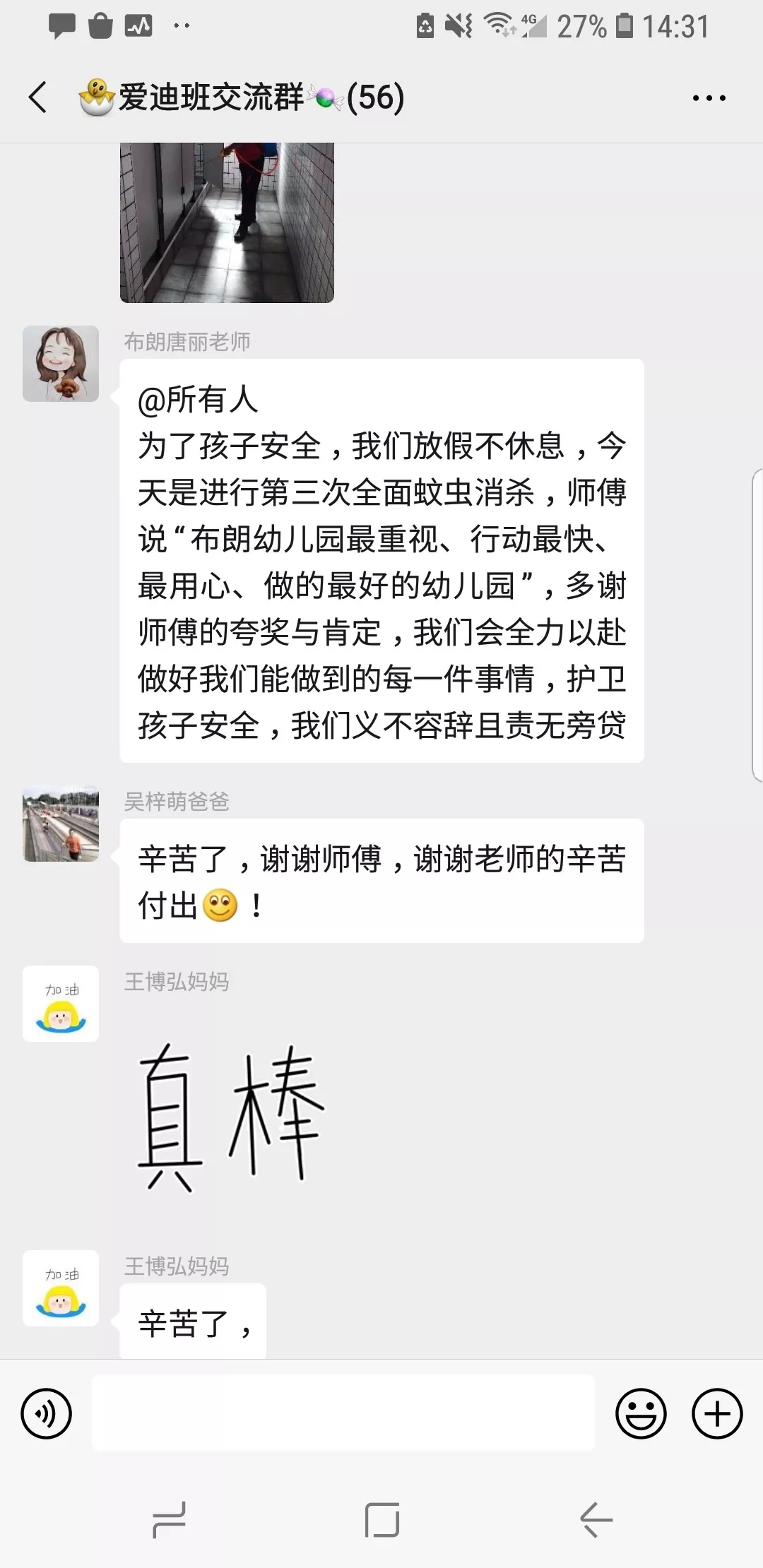布朗海口西溪里园积极行动,尽心致力地守护宝贝们的健康,赢得家长们和消杀工作人员的称赞好评!