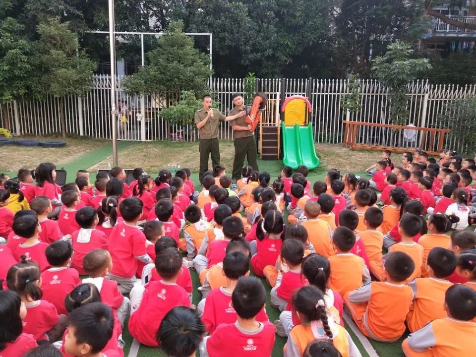 为切实加强幼儿园消防安全教育,进一步普及消防安全知识,提高师生遇到突发事件时的应变能力和自救、自护能力。2019年11月15日上午,广州市增城区新塘镇专职消防队的消防员们走进布朗幼儿园(广州新康园),与全园师生一起开展疏散逃生演练。