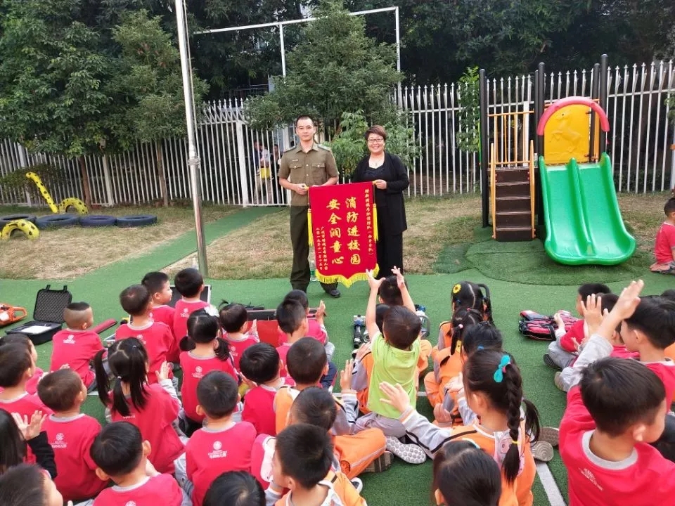 最后,这次演练确实要非常感谢广州市增城区新塘镇专职消防大队的消防员们,给了我们一个专业的培训和体验,增强了师生安全逃生及自我保护能力,懂得了发生火情如何自救,如何逃生,让孩子们逐步学会有事不慌,积极应对。同时也培养了师生互帮互助的良好作风,取得了圆满的成功。为表达感谢幼儿园芦园长还给消防大队的消防员们赠送了一面“消防进校园,安全润童心”的锦旗,将警民关系牢牢拉紧。