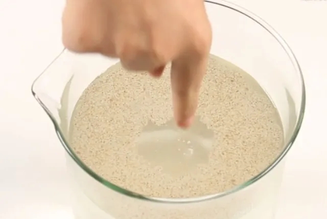 第三步:将带有洗洁精的手指伸入水中。哇哦!胡椒粉层被洗洁精勇士戳破啦!