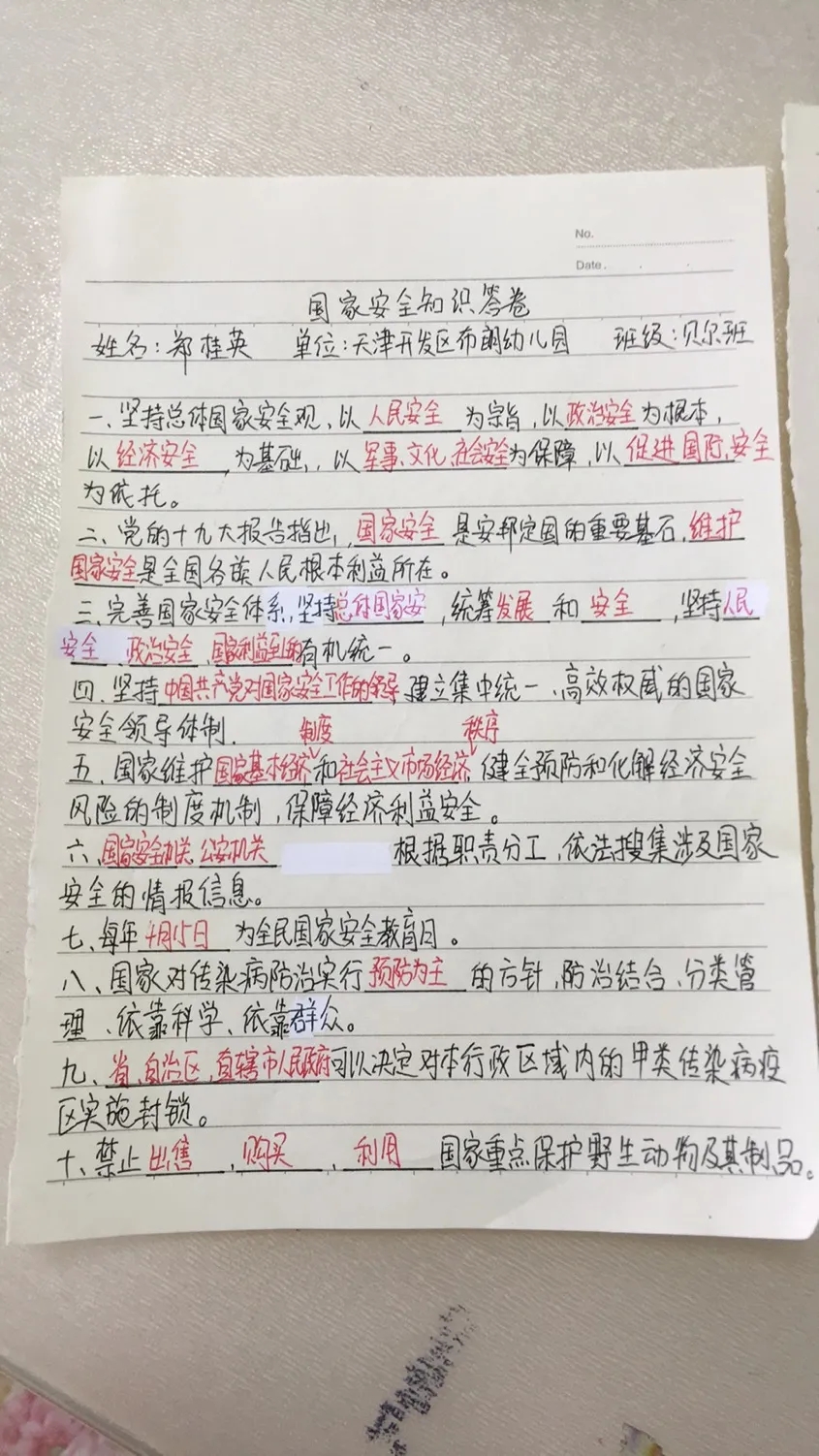 在学习了相关知识内容后,全园的教职工进行了试卷答题对所学内容进行巩固加深记忆。