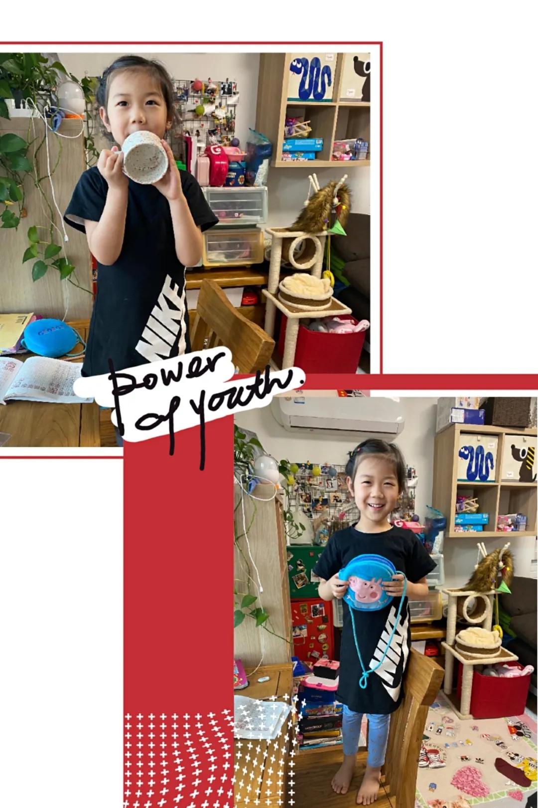 小美说:“看!妈妈的水杯,杯口是圆形的,还有我的蓝色小挎包也是圆形的!”