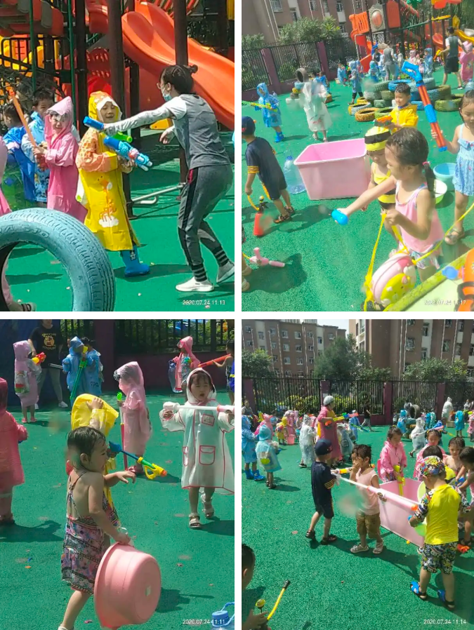 夏日的风,烈日的雨,天边的彩虹是心中的那一道亮丽,普通的水,纯真的你,孩子的快乐的源泉就在这里!看到五彩斑斓的色彩了吗?那是穿着雨衣、泳衣,手拿着各种水枪的孩子们!听到嘻嘻哈哈欢快的笑声了吗?那是孩子们“冲锋陷阵”“勇敢迎战”的勇敢之声。说了这么多,究竟是发生了什么事情?随着小编我们一起走进布朗幼儿园(大同魏都D园)来看一下吧!
