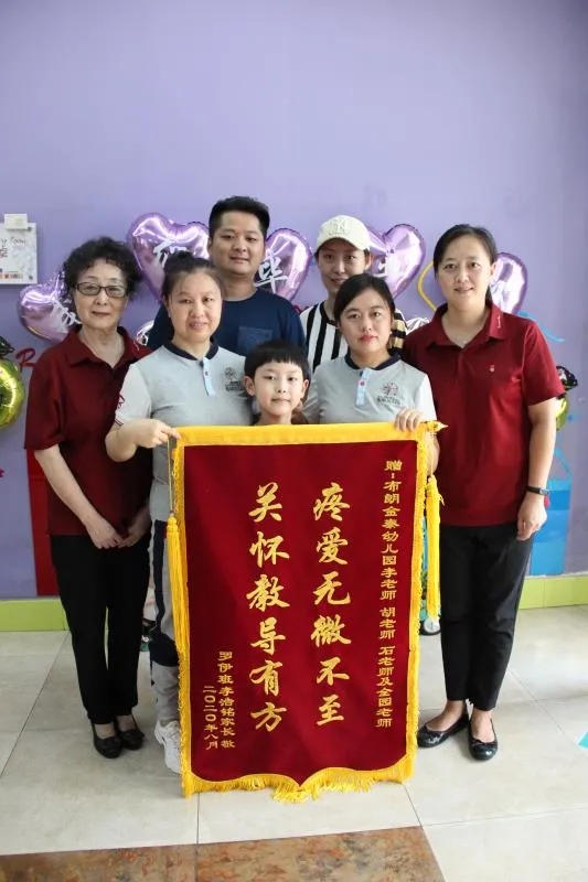正如锦旗上的句子:“爱心使者,桃李之源”,“疼爱无微不至,关怀教导有方”。在今后的工作中,我们布朗金泰的每一位教师,一定会以此为契机,始终以“服务幼儿、服务家长”为宗旨,以双倍的努力、更加用心地去服务每一个家庭,以更优秀的成绩赢得每一个家长与社会的认可,为园所赢得更多的荣誉。