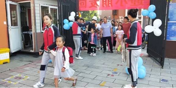 2020年9月1日早上,我园门口格外热闹,只听伴随着欢快的入园歌声,传来阵阵亲切、稚嫩的问候声“早上好、早上好”,原来是布朗幼儿园魏都B园的老师们在大门口热情地迎接着小朋友们的到来,小朋友们在家人的陪同下来到幼儿园。
