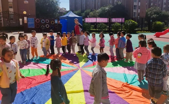 为了迎接开学,老师带领宝贝们一起来到户外迎接美好的幼儿园生活,跟着音乐一起摇摆我们的身体!还有好玩的彩虹伞游戏,别开生面的活动预示着美好的幼儿园生活开始啦!