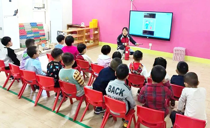 在日常教育教学中,各班组织形式多样的消防安全教育活动。老师们利用课件、视频、实物展示、动作讲解等形式,向幼儿详细讲解火灾中逃生、自救的正确方法。