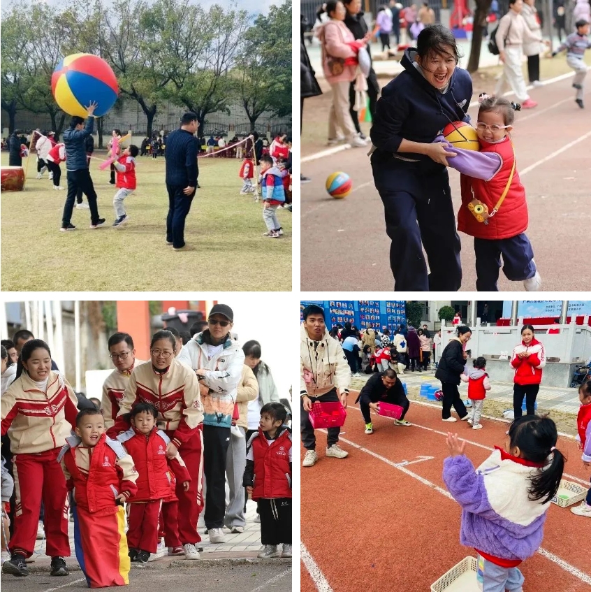 重头戏亲子游戏上场啦!充满趣味的游戏,立马抓住了家长和孩子们的眼球,点燃了彼此的热情。大家在游戏中体会快乐,在快乐中尽情的游戏。比赛环节一个接着一个,加油声、呐喊声、欢呼声成为整个运动场上的主旋律。孩子们和爸爸妈妈一起奋勇争先,努力拼搏。